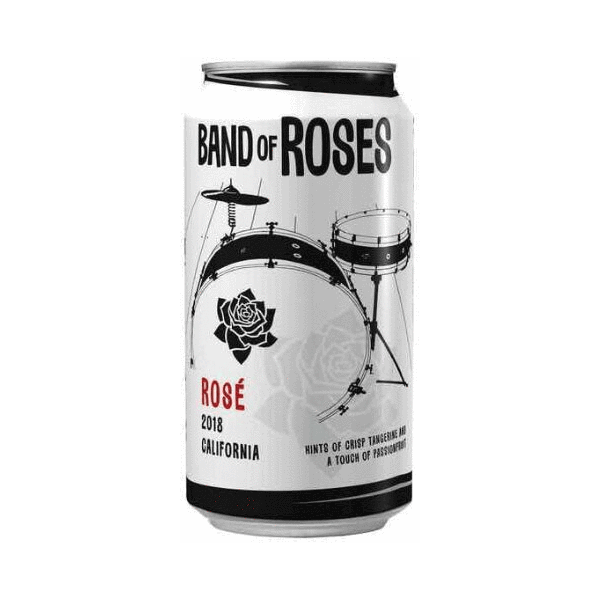 Celebrate the beat and rhythm of life with Band of Roses Rose Wine in cans, a dry blush wine that is pale in color but plush in texture, featuring delicate fruit and floral notes. This pink wine bestows hints of crisp tangerine and a touch of passion fruit, adding to the enjoyment of this satisfying canned wine that is ready to roll, wherever life leads.