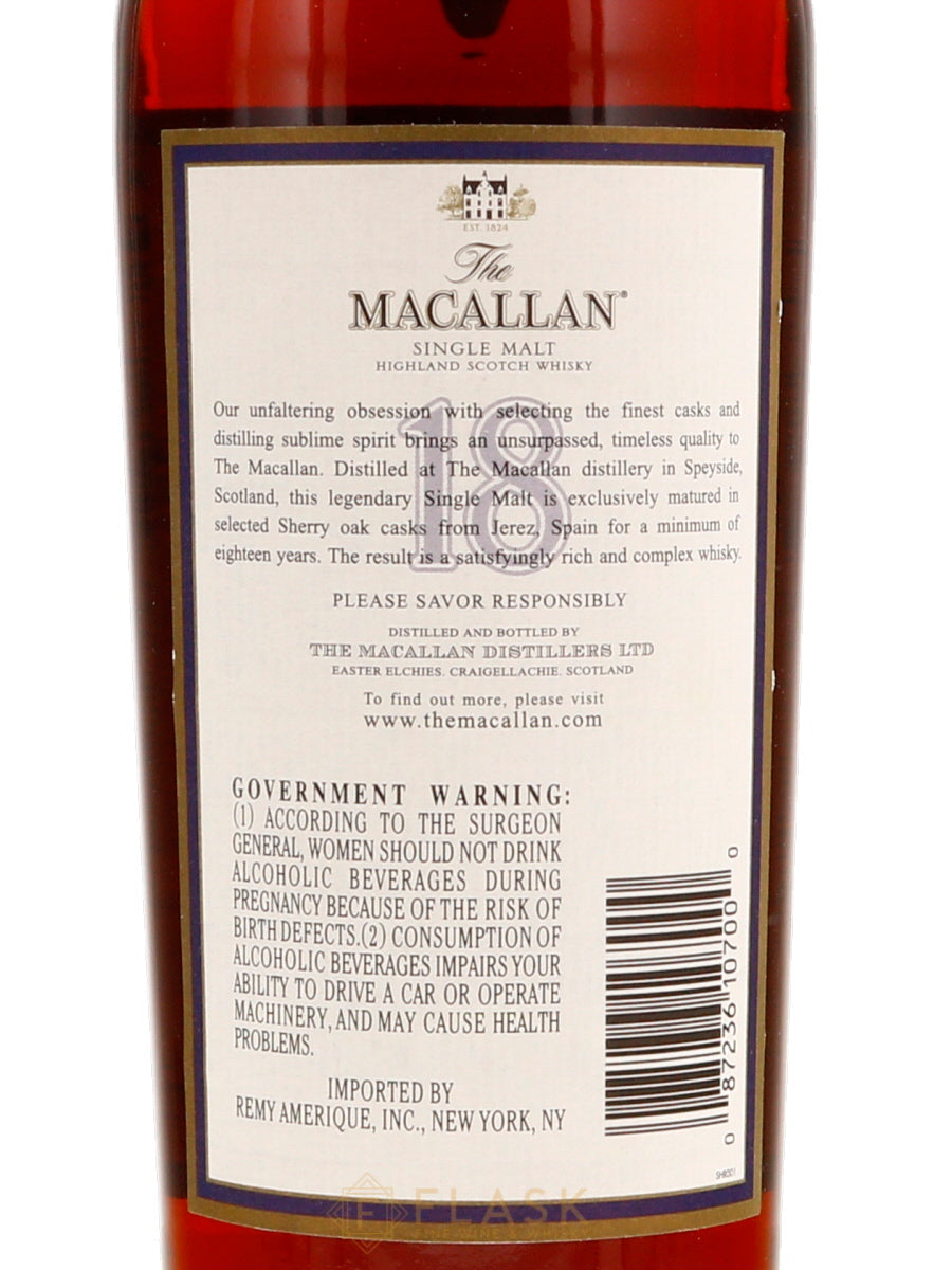 Macallan 18 Year Old Single Malt 1986 (Bottle Only)