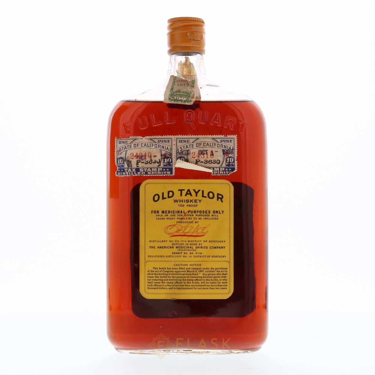 Old Taylor 1917 Prohibition Era American Medicinal Spirits Co. / Private Bottling / Full Quart [High Shoulder]