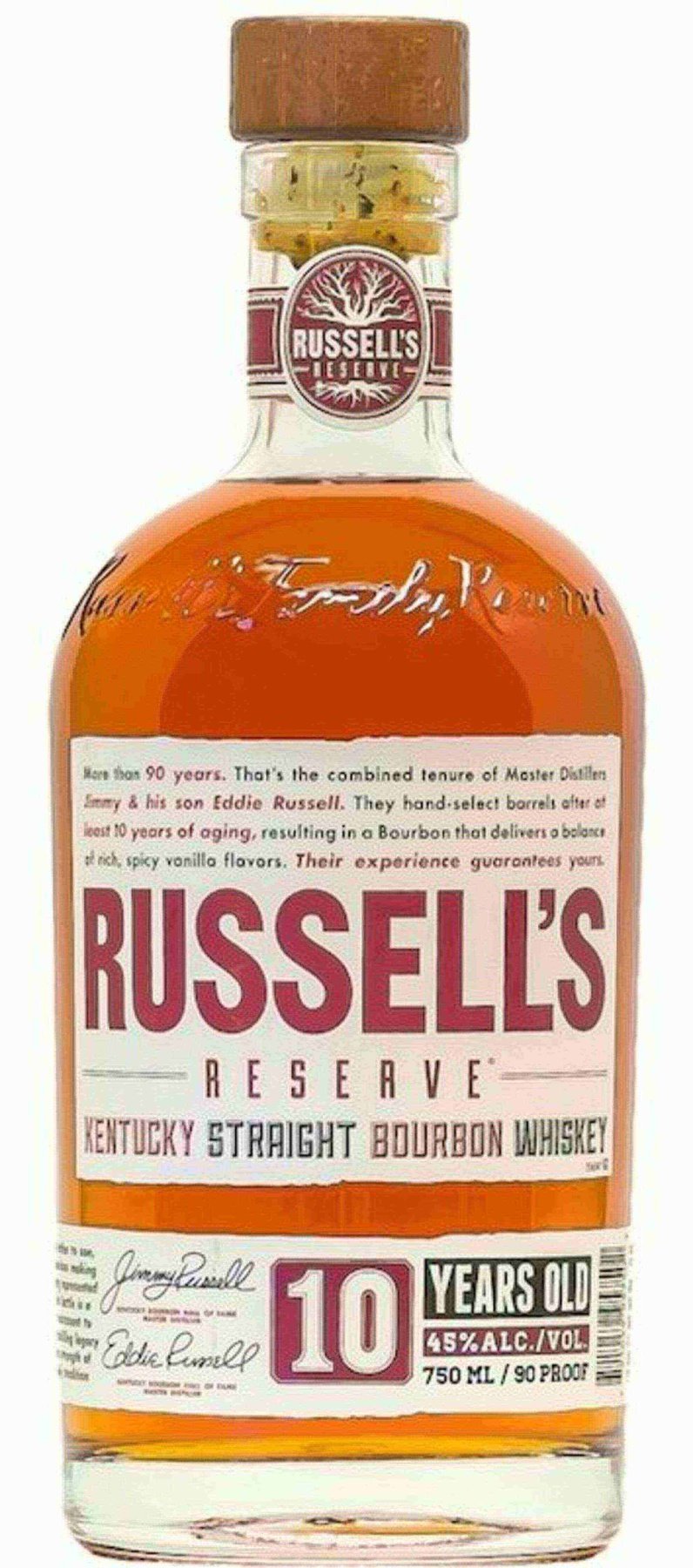 Russell's Reserve 10 Year Old Bourbon Whiskey is adored for its caramel, spicy, slightly sweet and creamy vanilla flavor notes. One of the best values in Bourbon.