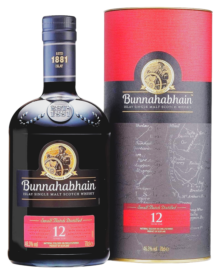 Bunnahabhain is a single malt Scotch whisky distillery founded in 1881 on the northeastern coast of Islay, Scotland, drawing water from the Margadale Spring. The distillery is known for producing largely unpeated Islay whisky, though the Toiteach A Dha expression uses heavily peated malt as a contrast to the house style. Core releases include the Bunnahabhain 12 Year Old Small Batch and the 18 Year Old, both matured in ex-sherry casks. Finished and limited expressions extend the range, including the 14 Year Old Pedro Ximenez Finish at 108.6 proof and the Cask Strength 2022 12 Year at 113.2 proof. The 1976 32 Year Old Single Yquem Cask Finish represents the distillery's most storied vintage bottling, while the Single Cask Nation Bunnahabhain 28 Year anchors the upper end of aged independent releases.