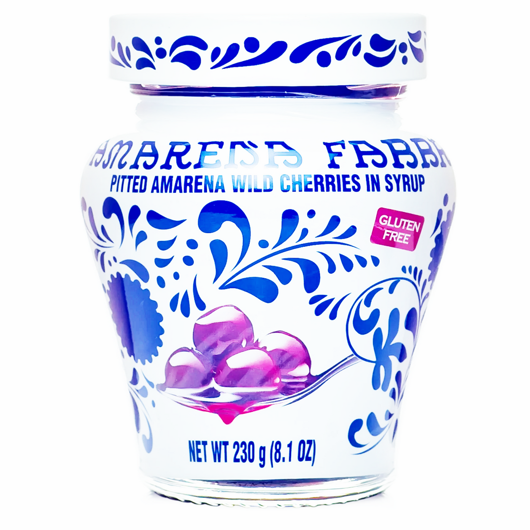 Imported from Italy. Amarena Fabbri Wild Cherries in Syrup are candied and immersed in syrup. Our cherries are the perfect balance of sweet and tart. Amarena cherries are unlike your common cocktail cherry or maraschino cherries. When you're looking to impress, take your cocktails to the next level with our authentic Italian Amarena cherries.