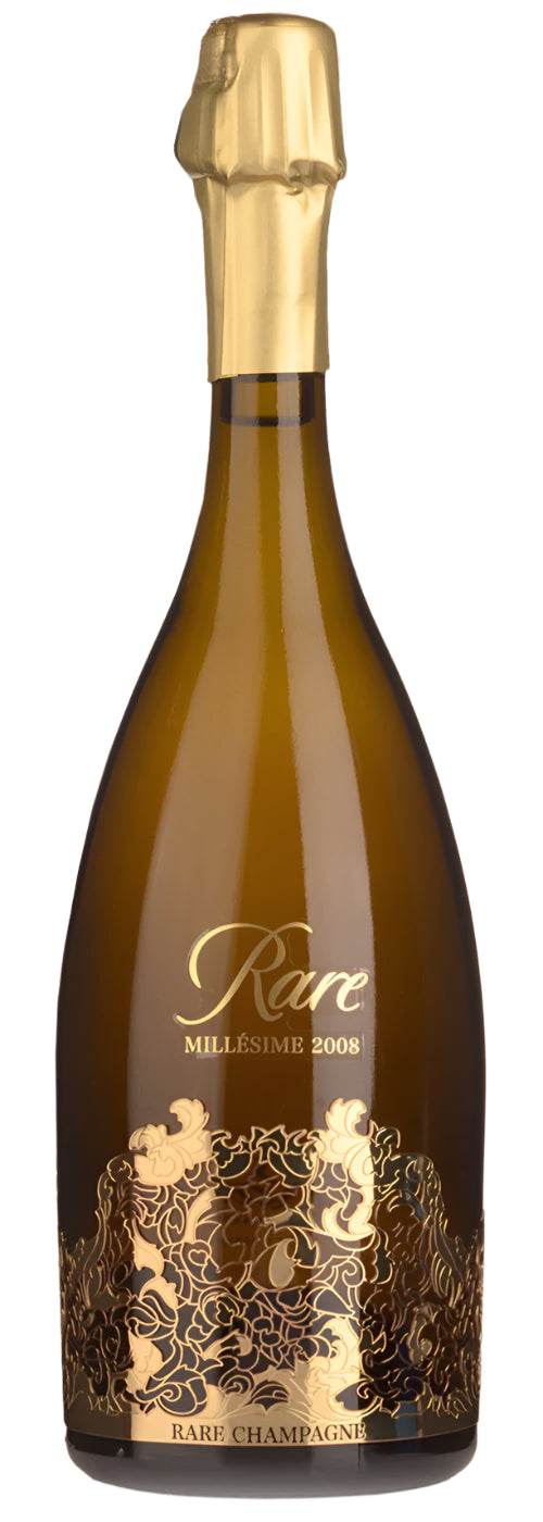 The 2008 Champagne Rare is luxurious with aromas of graham cracker, honeysuckle, quince, and orange zest. It is round and opulent, with a fine and pillowy mousse, and retains freshness throughout, with apricot and yellow flowers. It is impressive and long, and fully luxurious. Drinking well now, it is sure to hold its own for years to come.