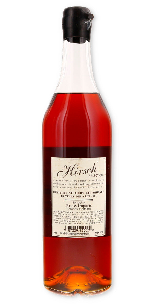 Hirsch Selection 13 Year Old Kentucky Rye Whiskey Black Wax