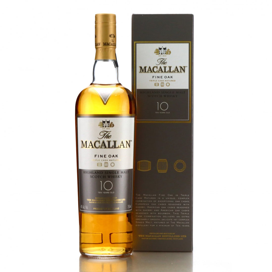 The Fine Oak series from Macallan was launched in 2004 and featured "triple matured" expressions, vatted from a combination of sherry seasoned European and American oak, and bourbon casks.