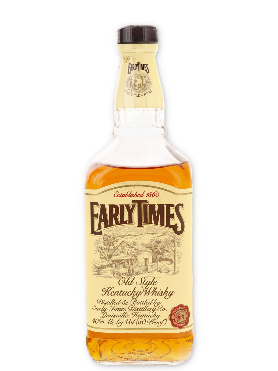The name Early Times was chosen as a tribute to the old-fashioned method of making whisky-- in other words the hard way. Although most brands have abandoned mashing grain in small tubs and distilling the whisky in copper stills over open fires, Early Times still holds on to tradition without the painstaking work.